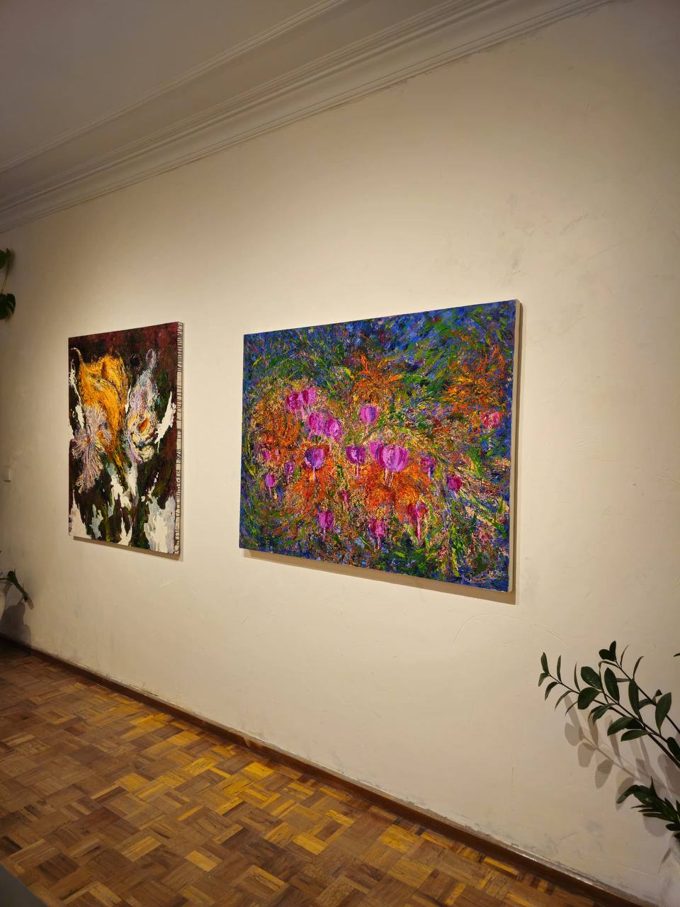 Through thick textures and vibrant brushstrokes, her works convey both turbulence and tenderness — a dialogue between inner chaos and the quiet resilience of color.